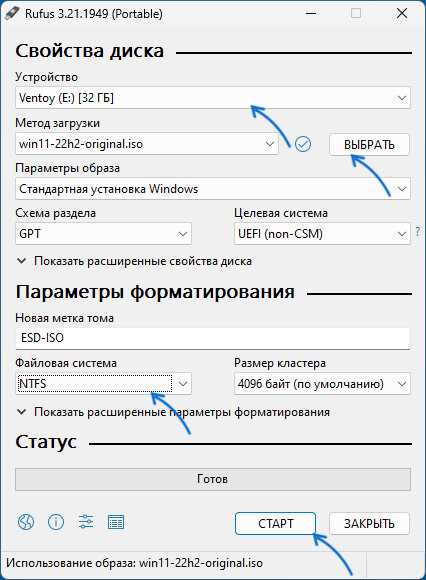 Процесс создания загрузочного диска может занять некоторое время, особенно если образ диска большой. Не закрывайте программу Rufus и не отключайте USB-накопитель во время процесса.